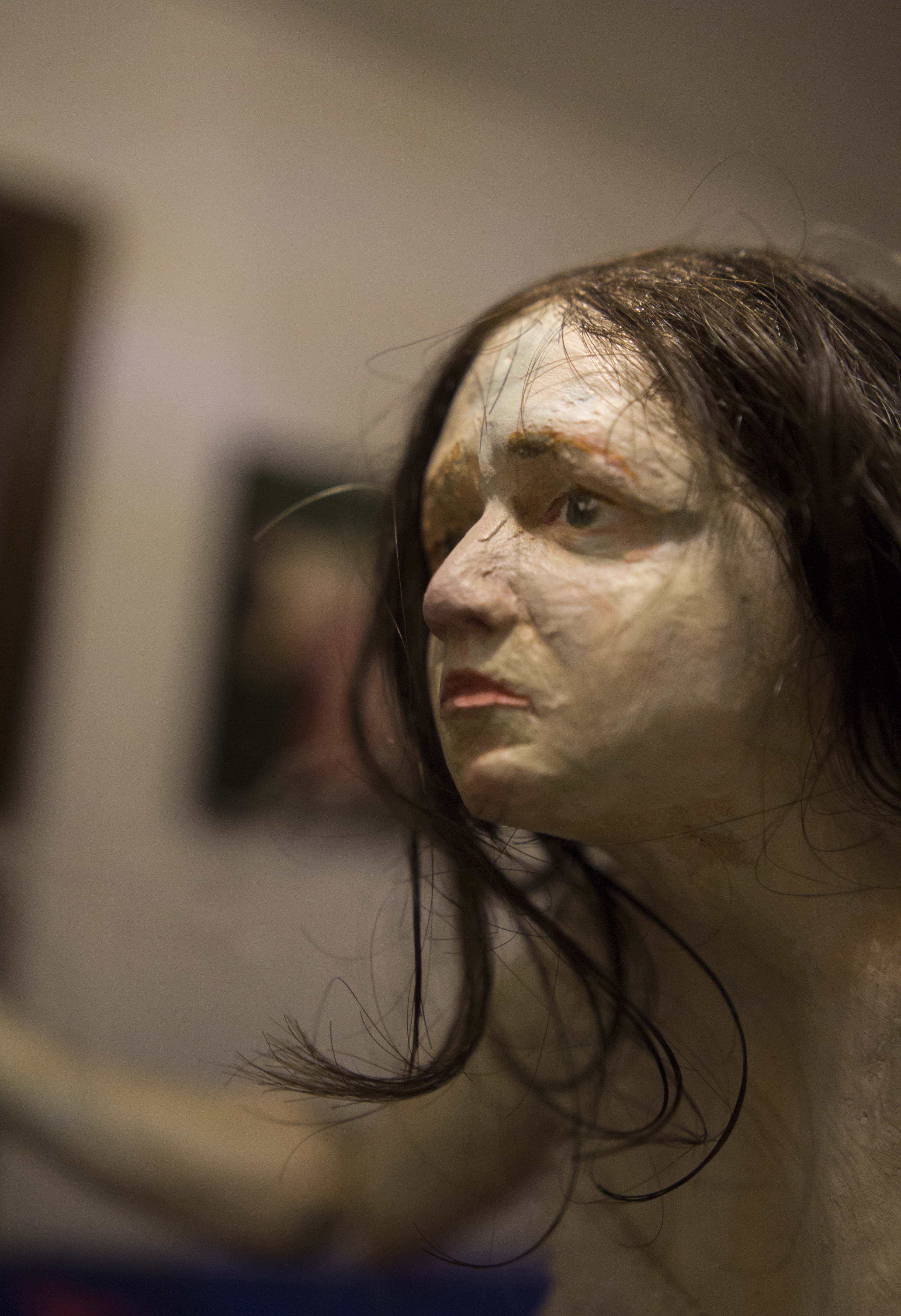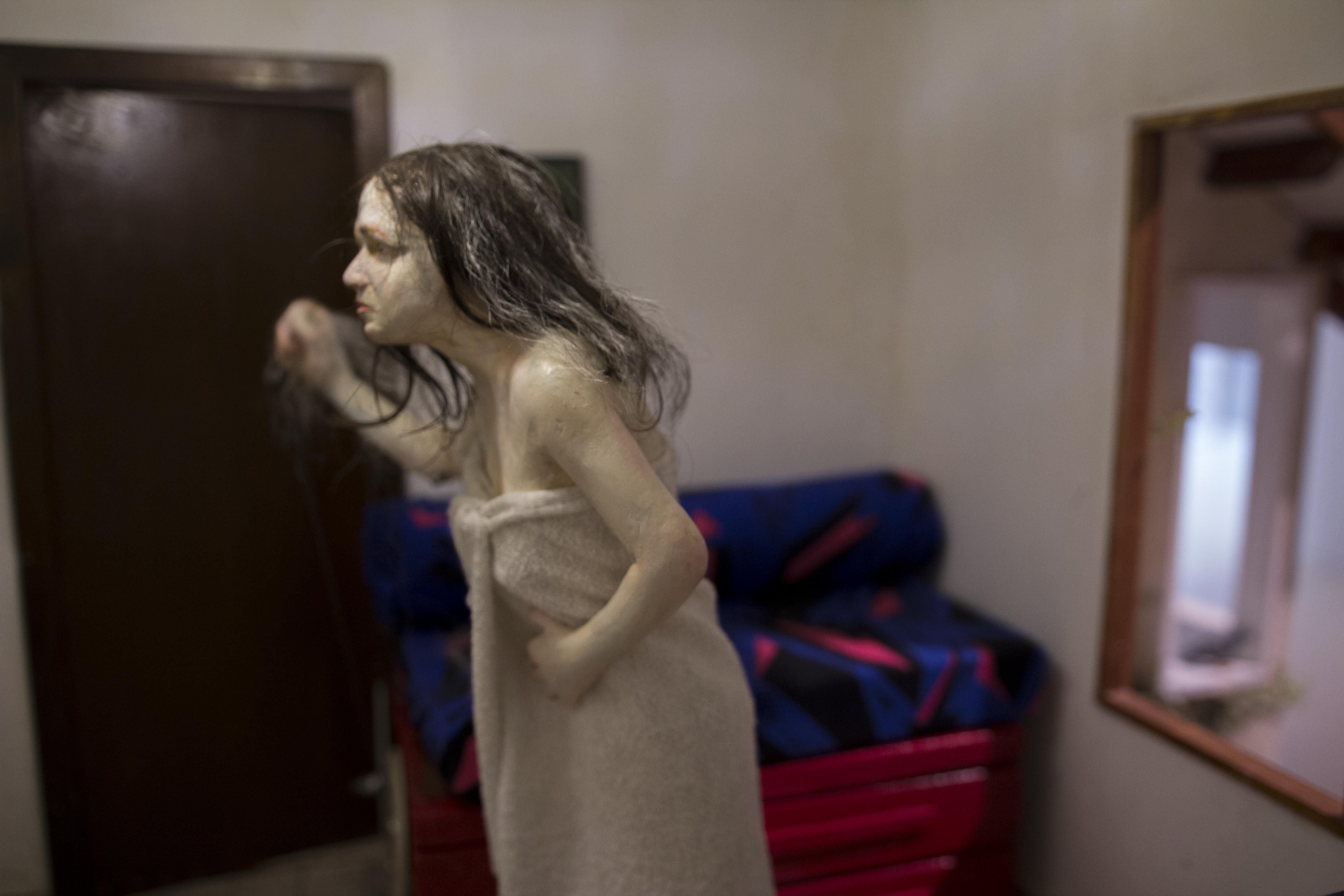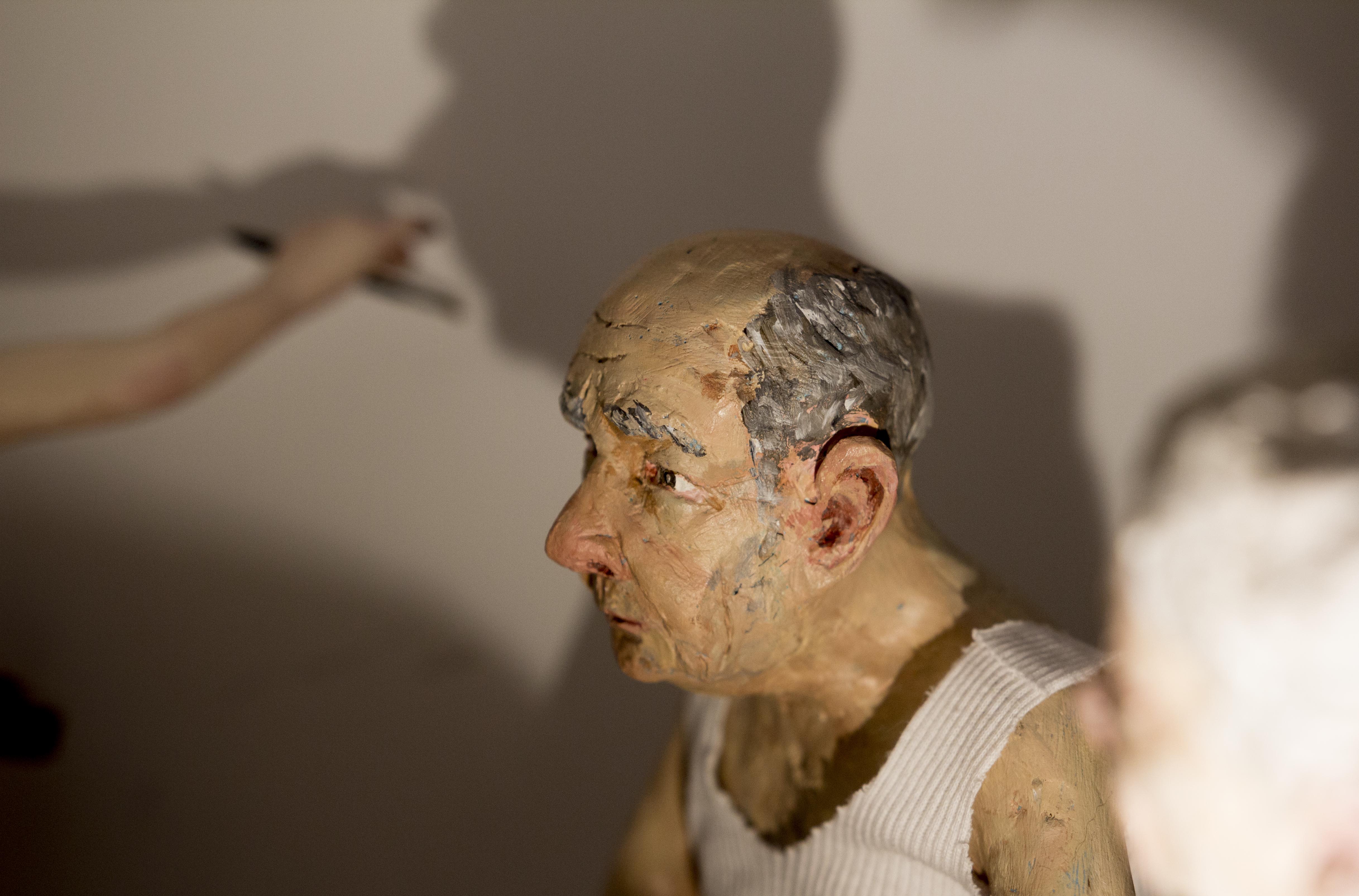 Those who have followed Aharonovitch's work in recent years mostly know her as a sculptor. The Cuckoo Clock exhibition was also, certainly, a sculptural exhibition. But Aharonovich began her artistic career as a painter and came to sculpture after completing her master's degree at the University of Haifa. Aharonovitch says that she then lifted by herself the statue she created, and in order to carry it she found herself embraced with the sculpted figure. This intimate contact first evoked thoughts about the physical relationship between a person and a statue - where one can touch it, caress it, pricked by it.